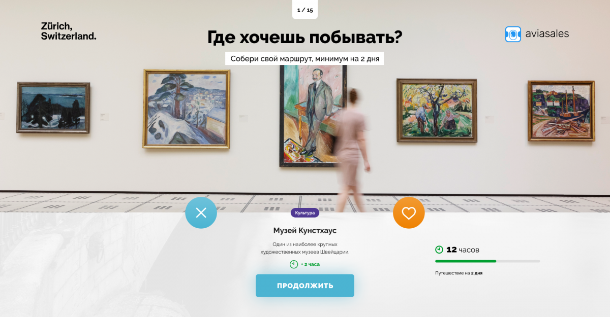 Спецпроект, в котором пользователи узнают факты о Цюрихе и составляют персональный маршрут для путешествия туда.