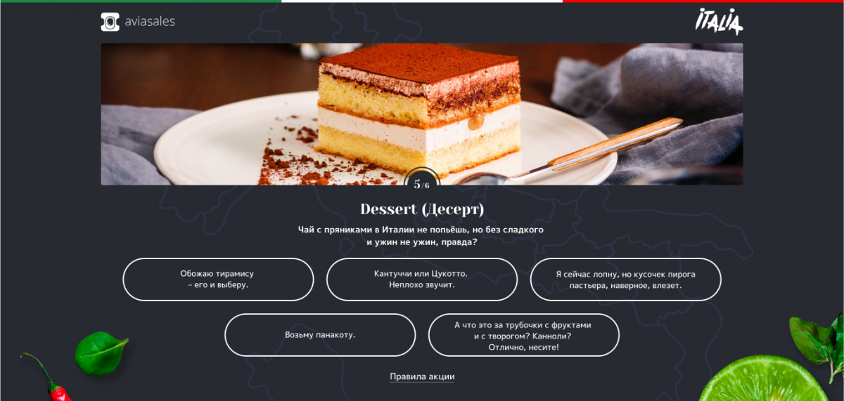 На основе выбранных вариантов система указывает регион Италии, в который нужно отправиться, чтобы попробовать любимые блюда: