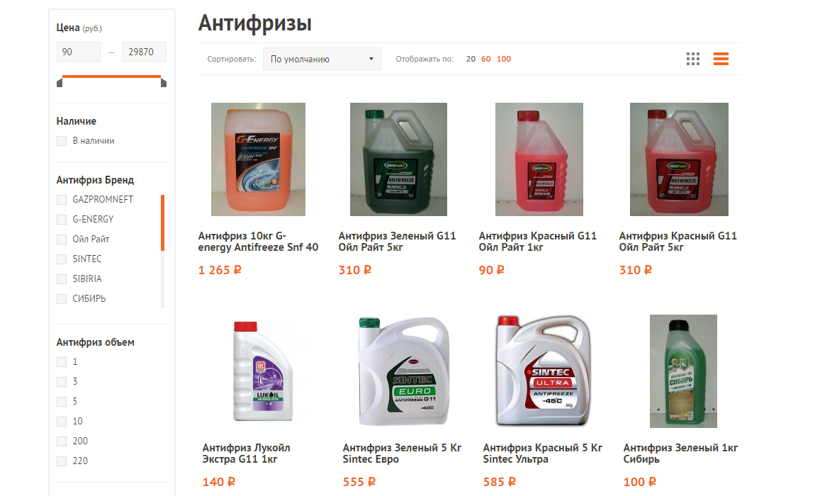 Еще, чтобы товары назывались по-человечески — вместо «а/фр. красн. 5К д.энер.», например — мы сделали генерацию названия по параметрам. Когда представитель заказчика забивает товары в базу, он может назвать их как угодно, но указать параметры (тип, цвет, объем, бренд) — и в итоге получится «Антифриз красный 5 кг G-energy». Это важно для SEO и Яндекс.Маркета.
