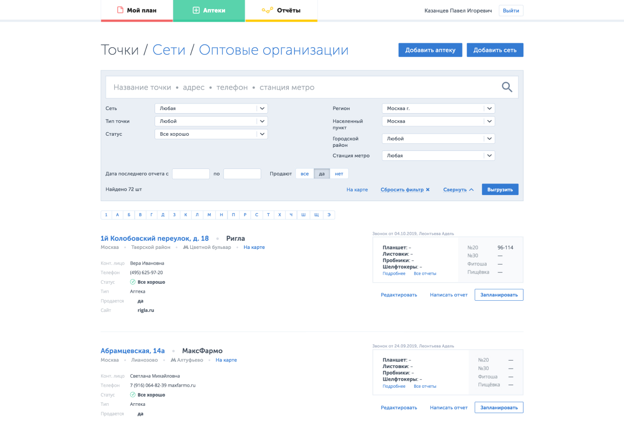С базой удобно работать благодаря системе поиска и фильтров, которая несколько раз дорабатывалась по отзывам представителей.