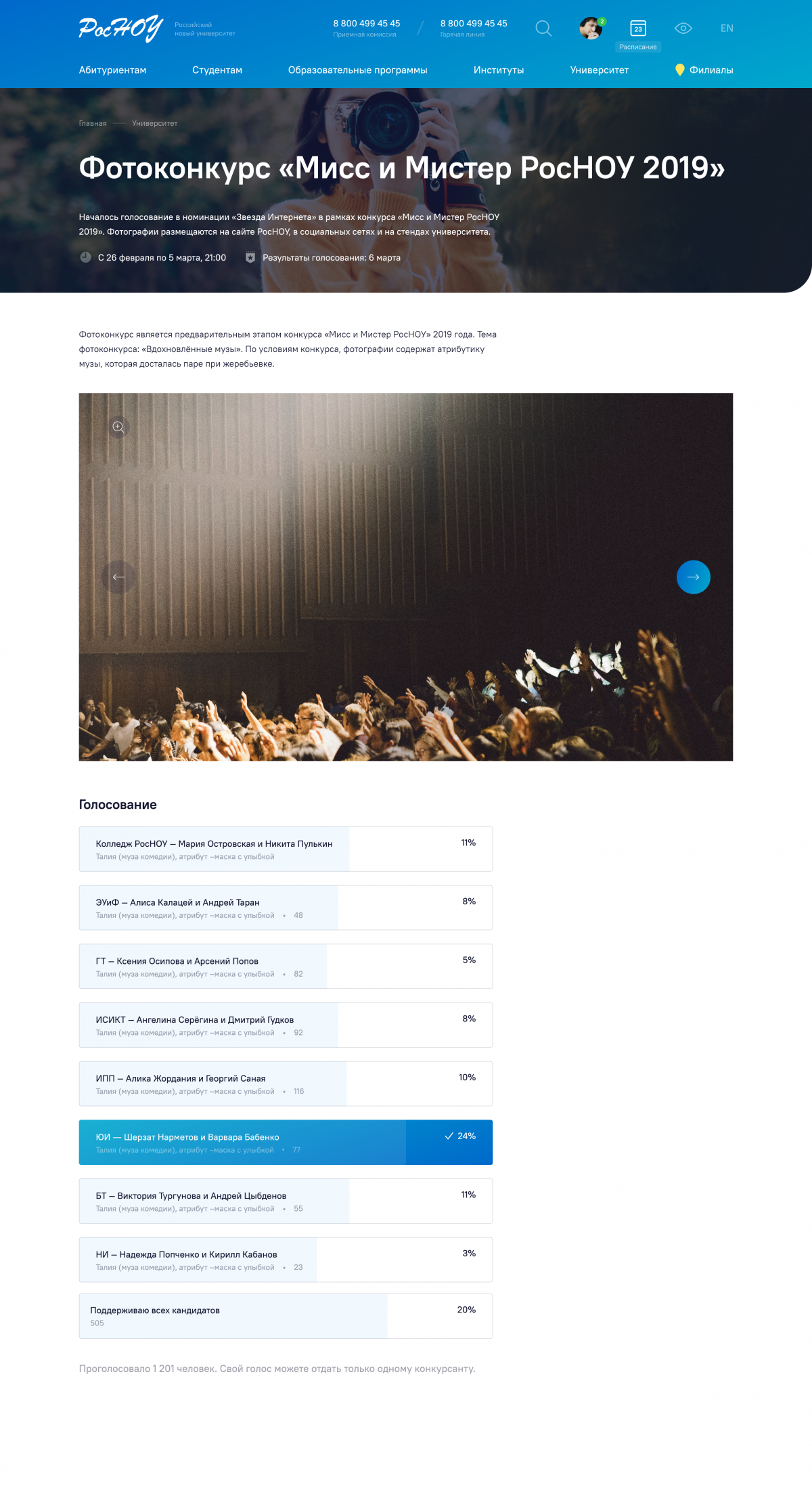 Перед нами стояла задача: сделать ёмкие, но при этом простые страницы для каждого института. Основная сложность была в запутанной структуре и большом количестве взаимосвязей между элементами. Кроме этого, подача информации различается для каждого типа пользователей.