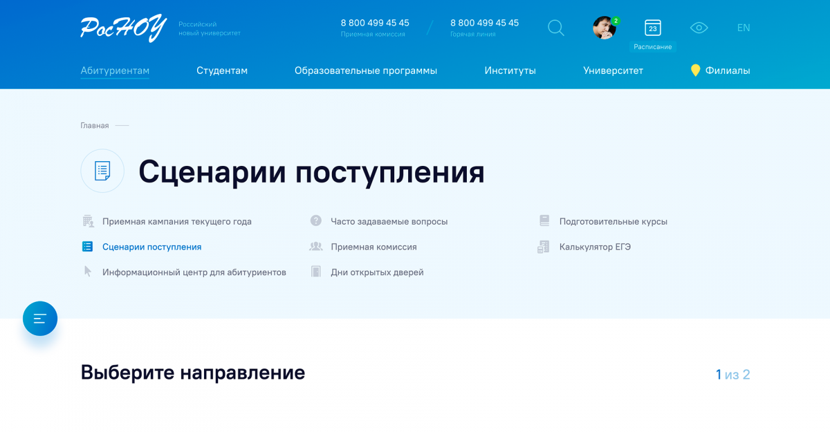 Также были важны сроки: первая версия портала должна быть запущена к началу лета, чтобы у абитуриентов был доступ ко всей необходимой информации.