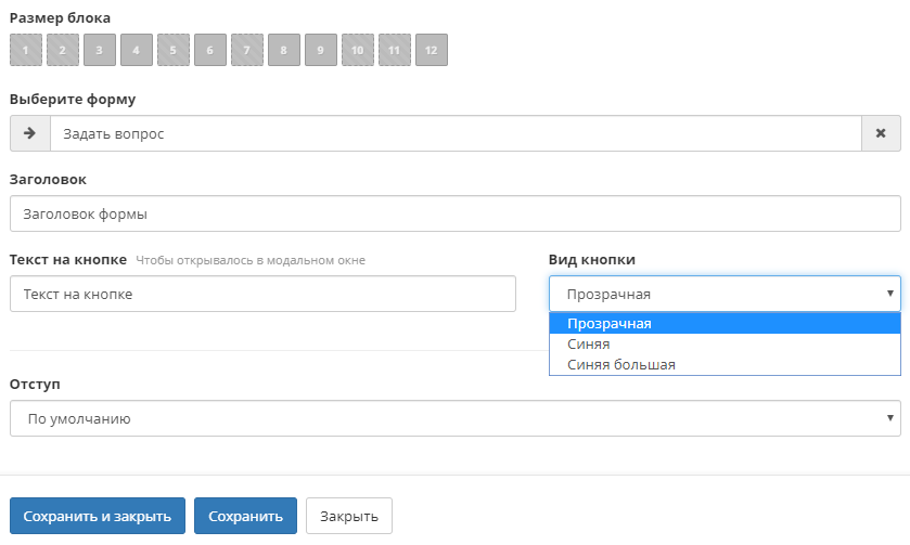 Также есть отдельные виджеты для описания спикеров и форма записи на мероприятие, которая настраивается через специальный конструктор форм в административной панели.